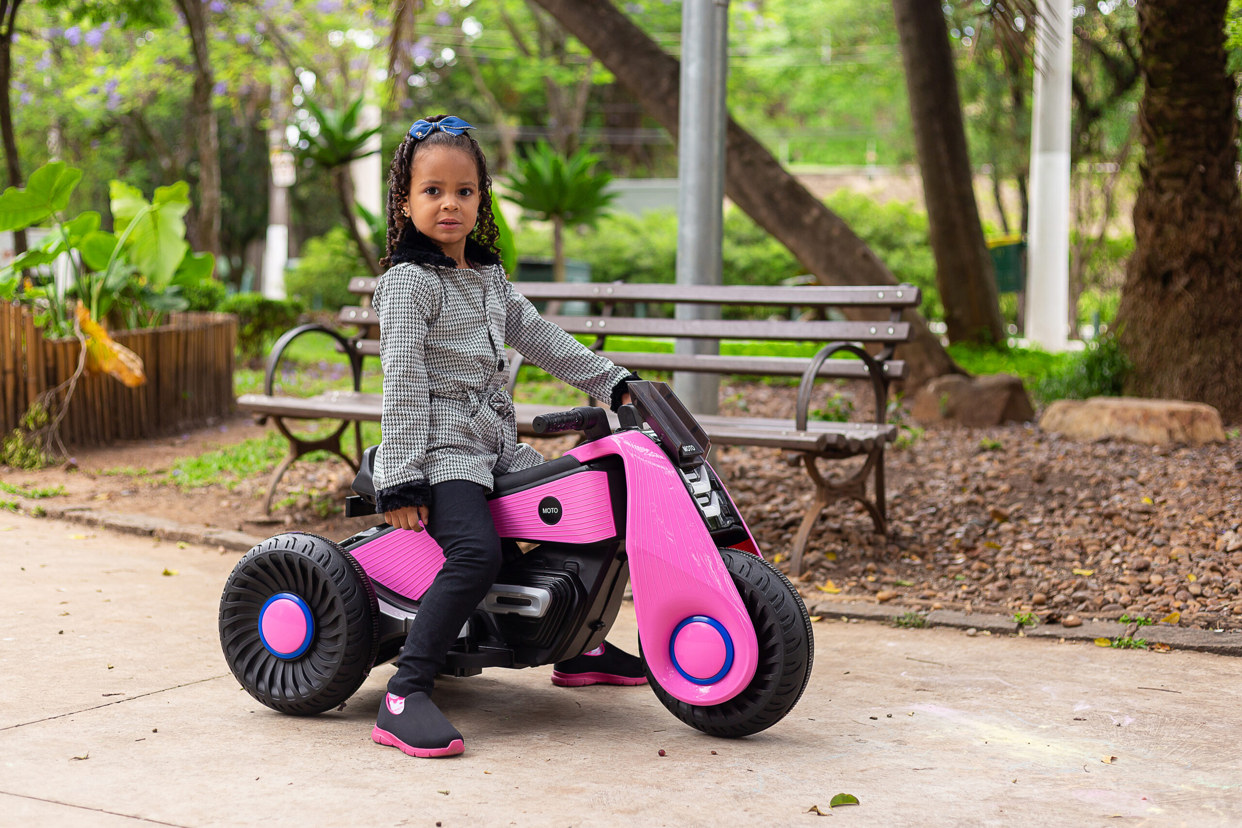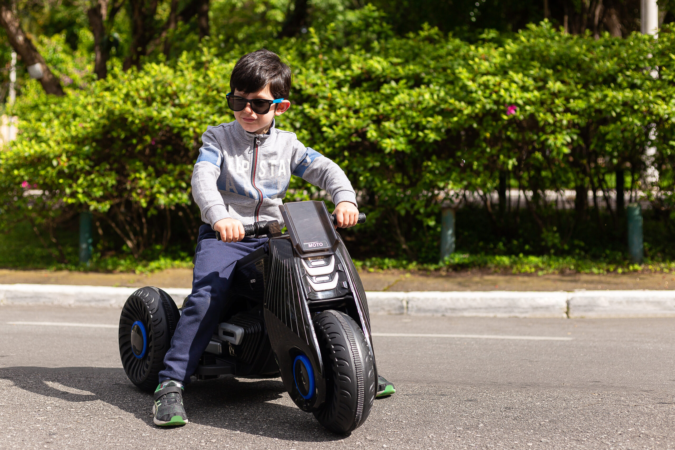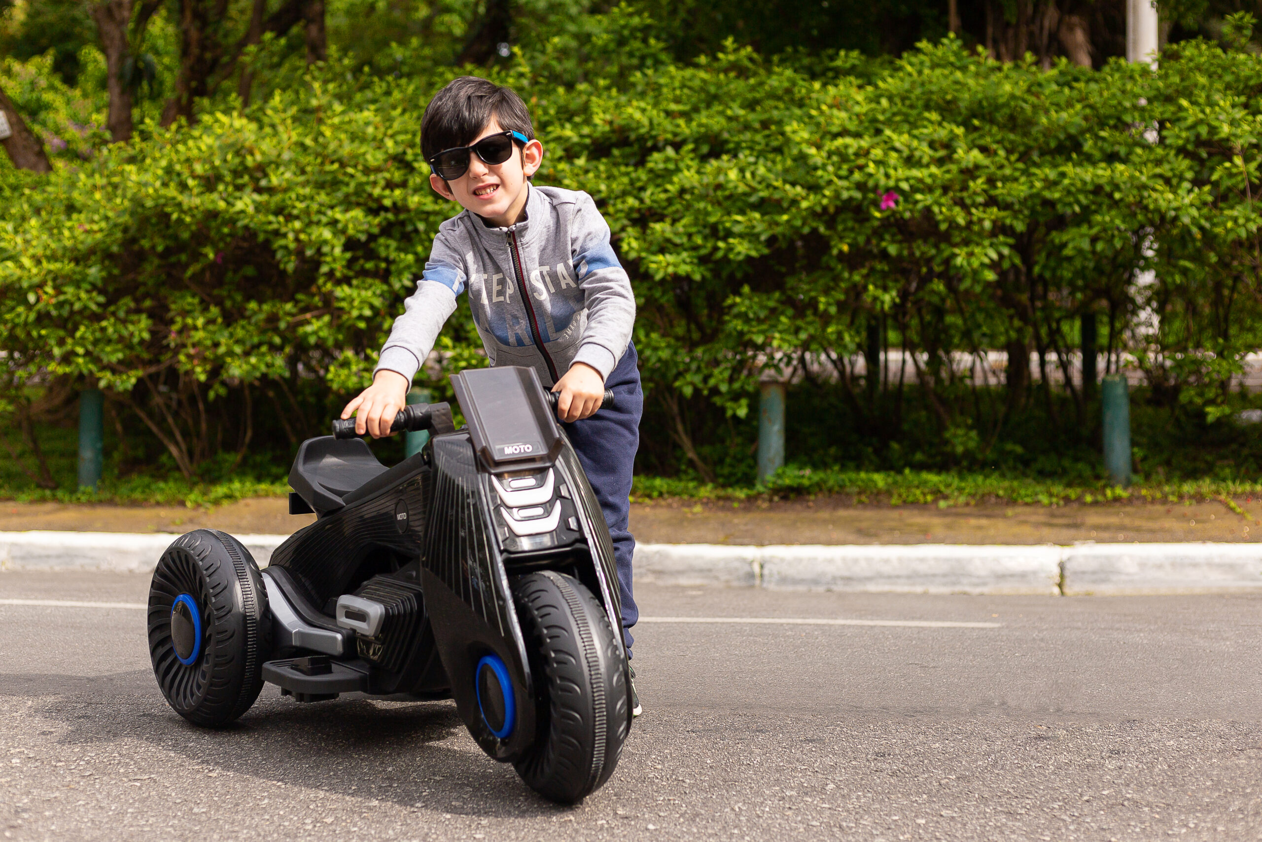 A motocicleta de 3 rodas é ideal para crianças, com alças e pedais projetados para dar a sensação de dirigir pela primeira vez. Podendo dirigir sozinhas e os pais podem orientar conforme necessário. As crianças podem curtir sua música agradável tocando suas músicas e histórias favoritas por meio da linha auxiliar ou usb fornecido, ao mesmo tempo, as três rodas também garantem segurança ao seu filho. O carro é fácil de operar e a criança pode dirigir para qualquer lugar que desejar.